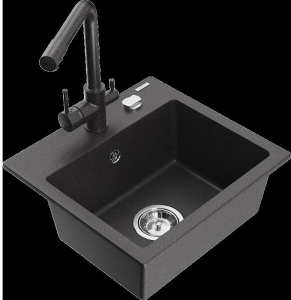 Gyártó: Mexen Sorozat: Diego + Savita Mosogató: Mérete: 488x488x167 mm Kamra - mélység: 157 mm Kamra átmérője: 406 mm Kimeneti átmérő: ø90 mm Típus: 1 kamrás Mosogató típusa: a munkalapba való beágyazáshoz Anyaga: gránit (80% gránit adalékanyag 20% gyanta) Túlfolyó nyílás: Igen Lyukak: 2 (1 a mosogató csapjához, 1 az automatikus leeresztő csavar vezérléséhez) Nagy