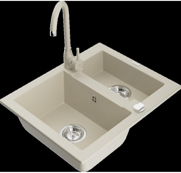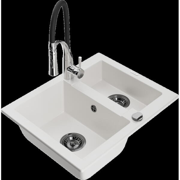 Mexen Tomas, 2 kamrás gránit mosogató 800x500x190 mm és konyhai csaptelep Duo, szürke, 6516-71-671701-07-B A konyhai mosogató műszaki adatai: Gyártó: Mexen Sorozat: Tomas Modell: 2-kamrás csepptálca nélkül Felszerelés: munkalapra Szín: szürke Felület: sima Hossza 800 mm Szélesség 500 mm Magasság: 190 mm Kamra mélysége: 180 mm (nagyobb), 180 mm (kisebb) Kamra mérete: 440x387