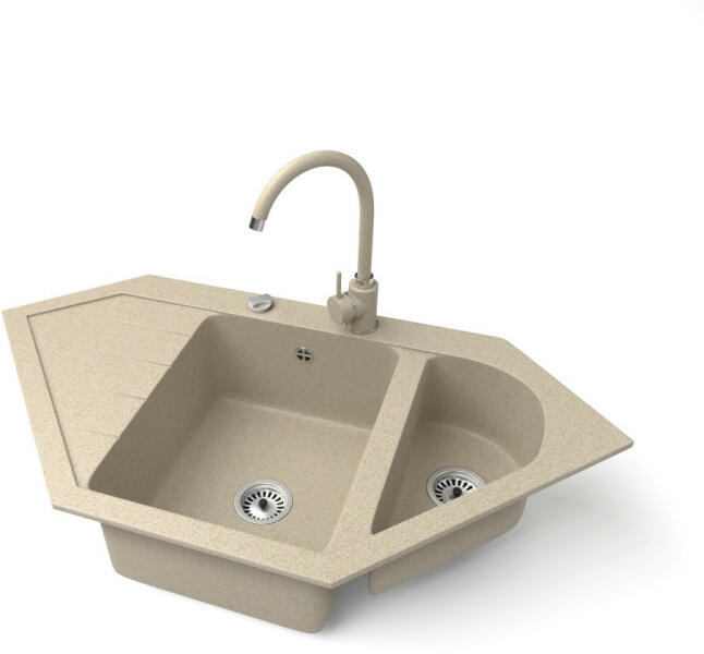 NERO Joker sarok mosogató, ami egyben praktikus és impozáns látványelem is a konyhában. Tökéletes választás azokba a konyhákba, ahol a mosogató rész a sarokban lett kialakítva. Szögletes, határozott vonalvezetése nagyszerűen illik modern vagy minimál stílusú konyhákba. A mosogatón 2 lyuk lett kialakítva, egy a csaptelepnek és egy a beépíthető mosogatószer adagolónak v