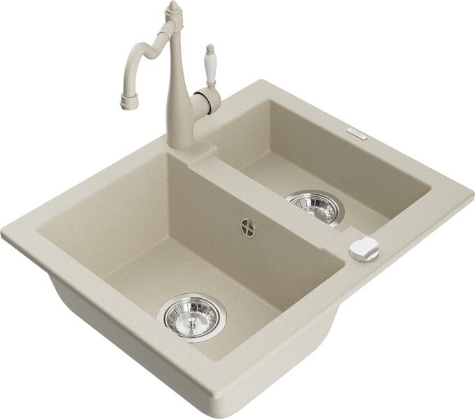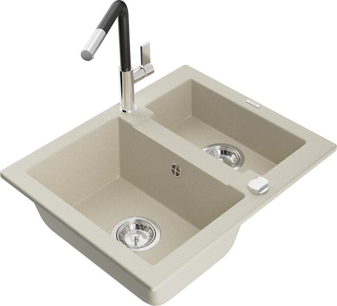 Mexen Carlos, gránit mosogató 582x475x177 mm, 1,5 kamrás és mosogató csaptelep Carla, bézs, 6518-69-670700-69 Műszaki adatok: Gyártó: Mexen Sorozat: Carlos Modell: 1,5-kamrás csepptálca nélkül Beépítés: felülről a munkalapba süllyesztve Szín: bézs Hossza 582 mm Szélesség 475 mm Magasság: 177 mm Kamra mélysége: 162 mm (nagyobb), 102 mm (kisebb) Kamra mérete: 395x272 mm (n