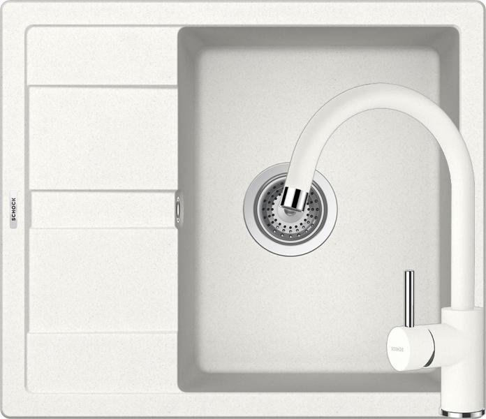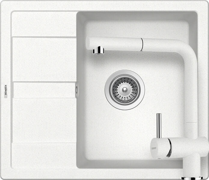 Schock Ronda D-100 konyhai mosogatótálca Cristalite Alpina 580 x 500 mm, gránit, megfordítható, hagyományos beépítés, fehér munkalapba beépíthető, egymedencés, megfordítható, csepegtetővel ellátott, ideálisan illeszkedik a minimum 45 cm-es alsószekrényhez. A csaptelep helye előre elkészített, könnyedén áttörhető. A csomagban találja a használati útmutatót, amely r