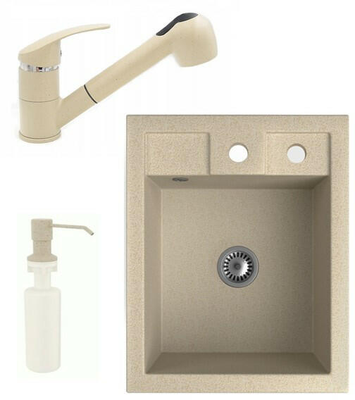 NERO Parma amely kisméretű, de mégis nagyon tágas gránit mosogató, csapteleppel, szifonkészlettel , mosogatószer adagolóval, homokbézs színben . Egyik nagy előnye, hogy már egy 40 cm széles konyhabútor elembe is beépíthető, az 50 cm-es mélysége kellő méretet biztosít. A medence mélysége is nagynak számít, 18 cm. Tökéletes bármilyen stílusú konyhába ahol az okos hel