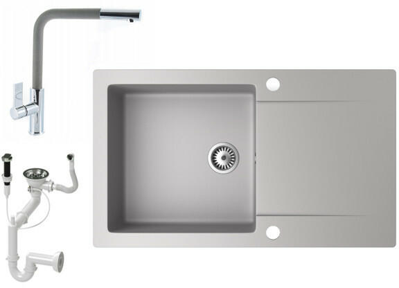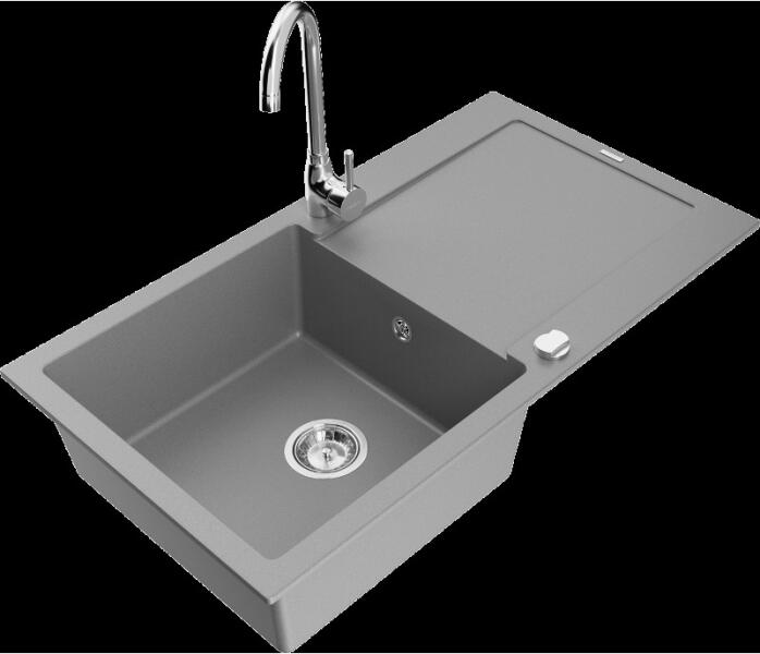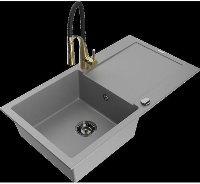NERO Gold gránit mosogató szürke színben. Praktikus kialakítású egymedencés mosogató, kellő méretű csepegtető résszel. Modern letisztult formájával egy modern konyha tökéletes része lehet. Különlegessége hogy a csepegtető rész nem bordázott, így a minimál stílusú konyhákba is nagyszerű választás. A mosogatón 2 lyuk találhato egy a csaptelepnek és egy a beépíth