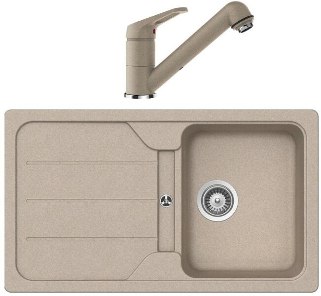 Mexen Pablo, gránit mosogató 752x436x161 mm, 1 kamrás és mosogató csaptelep Carla, bézs, 6510-69-670700-70 Gyártó: Mexen Sorozat: Pablo Méretek: 752x436x161 mm Kamra mélysége: 151 mm Kamra méretei: 356x332 mm Lefolyó átmérője: ø90 mm Szín: bézs Típus: 1 kamrás csepegtetővel Típus: felülről a pultba süllyesztve Anyaga: gránit (80% gránit adalékanyag 20% gyanta) Túlfoly