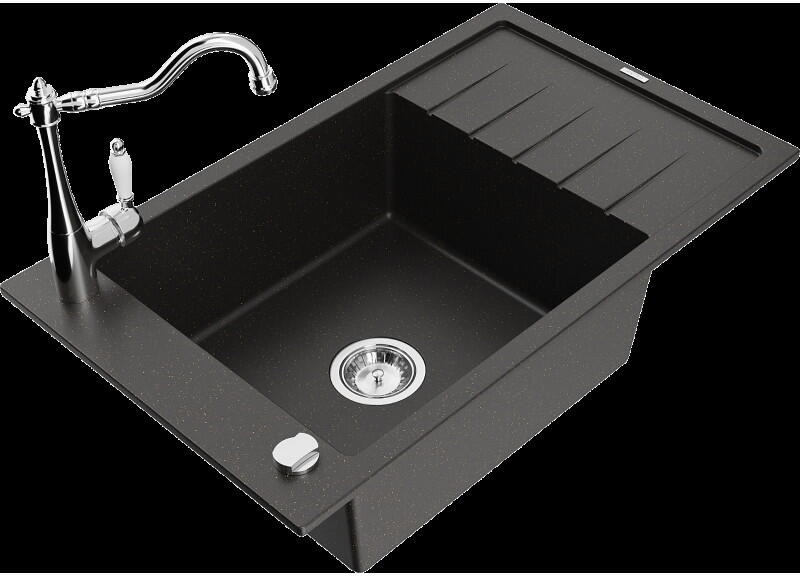 Gyártó: Mexen Sorozat: Cesar + Carla Mosogató: Szín: fekete foltos Méretek: 775x470x200 mm Kamra méretei: 410x355 mm Kamra mélysége: 180 mm Lefolyó átmérője: ø90 mm Típus: 1 kamrás lefolyóval Mosogató típusa: a munkalapba való beágyazáshoz Anyaga: gránit (80% gránit adalékanyag 20% gyanta) Túlfolyó nyílás: Igen Lyukak: 2 (1 lyuk a mosogató csaptelepéhez, 1 lyuk az aut