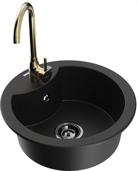 Mexen Diego, 1 rekeszes gránit mosogató 488x488x167 mm, fekete szifon, arany fényes Telma csaptelep, fekete, 6512-77-670200-50-B Gyártó: Mexen Sorozat: Diego Modell: 1 kamrás Felszerelés: munkalapra Fekete szín Felület típusa : sima Hossza 488 mm Szélesség 488 mm Magasság: 167 mm Kamra mélysége: 157 mm Kamra mérete: 406 mm Lefolyó átmérője: 90 mm Szifon + automatikus leereszt