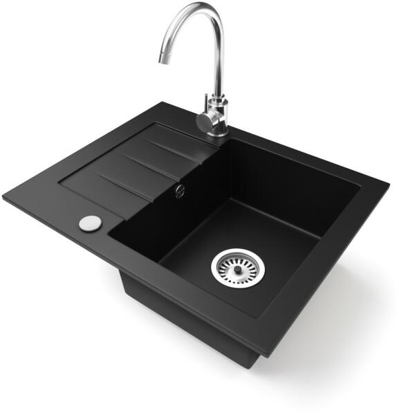 NERO Monza gránit mosogatótálca matt fekete színben. Kis méretének köszönhetően tökéletesen illik olyan kisebb méretű konyhákba ahol minden centiméter helyre szükség van. Mindössze 57 cm széles, amelyet mélységével kompenzál, így mind a medence, mind a csepegtető rész tökéletesen használható. Modern, karakteresen szögletes formavilág és kiemelkedő anyagvastagság