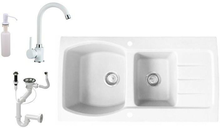 Másfél medencés gránit mosogató fehér színben. Ez a modell egyesíti a praktikumot a stílusos megjelenéssel. Nagy medencéinek köszönhetően kényelmes mosogatást tesz lehetővé. Egyik különlegessége az átlag feletti méretű gyümölcsmosó rész. A két medence lehetővé teszi párhuzamosan a mosogatást, öblítést vagy csak a vízben tartást a főzéskor. Nagy méretének k