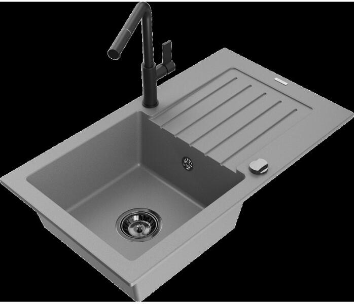 Mexen Cesar konyhai mosogató: Gyártó: Mexen Sorozat: Cesar Modell: 1 kamrás Beépítés: felülről a munkalapba süllyesztve Méretek: 775x470x190 mm Kamra mélysége: 180 mm Kamra mérete: 410x355 mm Lefolyó átmérője: 90 mm Szifon + automatikus leeresztő csavar Anyaga: gránit (80% gránit - kő, 20% gyanta) Sima felület a könnyű tisztítás érdekében: igen Megnövelt ellenállás
