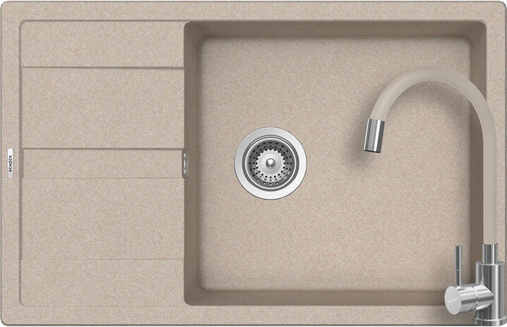 Schock Ronda D-100XL konyhai mosogatótálca Cristalite Sabbia 780 x 500 mm, gránit, megfordítható, hagyományos beépítés, homok munkalapba beépíthető, egymedencés, megfordítható, csepegtetővel ellátott, ideálisan illeszkedik a minimum 60 cm-es alsószekrényhez. A csaptelep helye előre elkészített, könnyedén áttörhető. A csomagban találja a használati útmutatót, amely r
