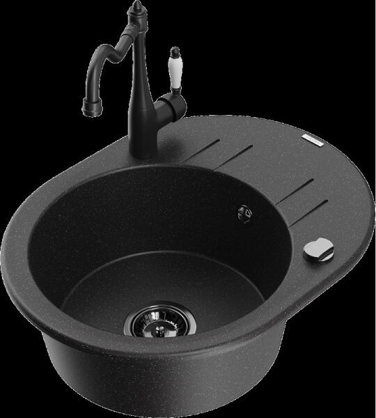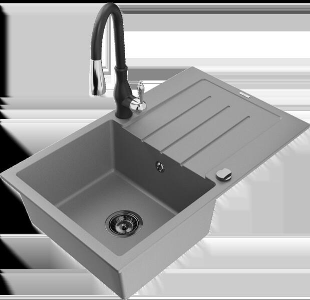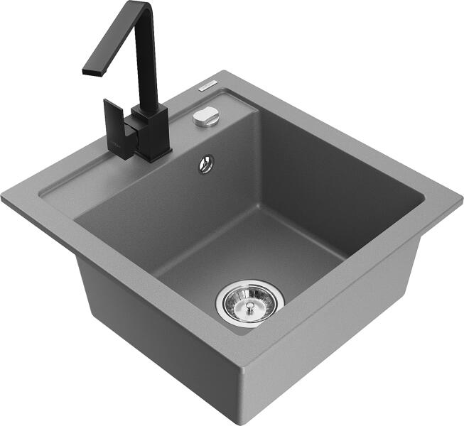 Mexen Vito, 1 kamrás gránit mosogató 520x490x210 mm, fekete Rita csaptelep, szürke, 6503-71-670300-70 Mosogató: Mérete: 520x490x210 mm Kamra mélysége: 200 mm Kamra méretei: 410x360 mm Lefolyó átmérője: ø90 mm Típus: 1 kamrás Típus: Az asztallapba süllyesztett Szín: szürke Anyaga: gránit (80% gránit adalékanyag 20% gyanta) Túlfolyó nyílás: Igen Lyukak: (akkumulátor, gép