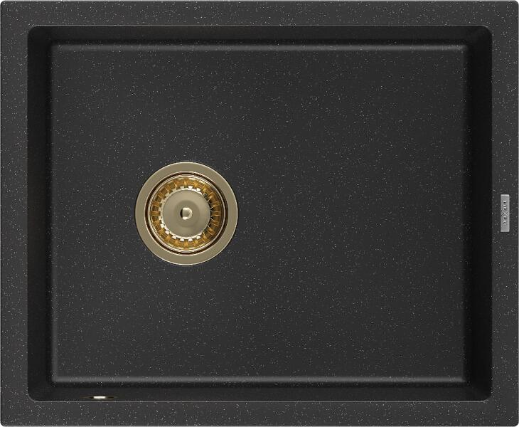 Mexen Pedro, gránit mosogató 560x460x200 mm, 1 kamrás, fekete-ezüst metál arany szifonnal, 6508561000-73-G Gyártó: Mexen Sorozat: Pedro Méretek: 560 x 460 x 200 mm Kamra mélysége: 190 mm Szín: fekete - ezüst metál Modell: 1 kamrás Kamra mérete: 500x400 mm Lefolyó átmérője: 90 mm Kézi szifon Anyaga: gránit (80% gránit - kő, 20% gyanta) Könnyen tisztítható sima felület Me