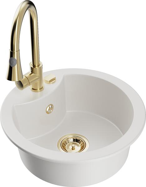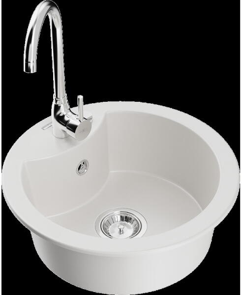 Mexen Diego konyhai mosogató: Gyártó: Mexen Sorozat: Diego Modell: 1 kamrás Beépítés: felülről a munkalapba süllyesztve Méretek: 488x488x167 mm Kamra mélysége: 157 mm Kamra átmérője: 406 mm Lefolyó átmérője: 90 mm Szifon + automatikus leeresztő csavar Anyaga: gránit (80% gránit - kő, 20% gyanta) Sima felület a könnyű tisztítás érdekében: igen Megnövelt ellenállás