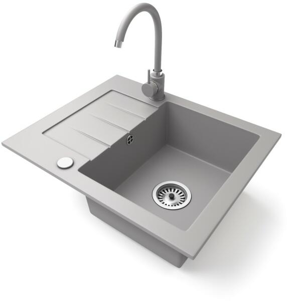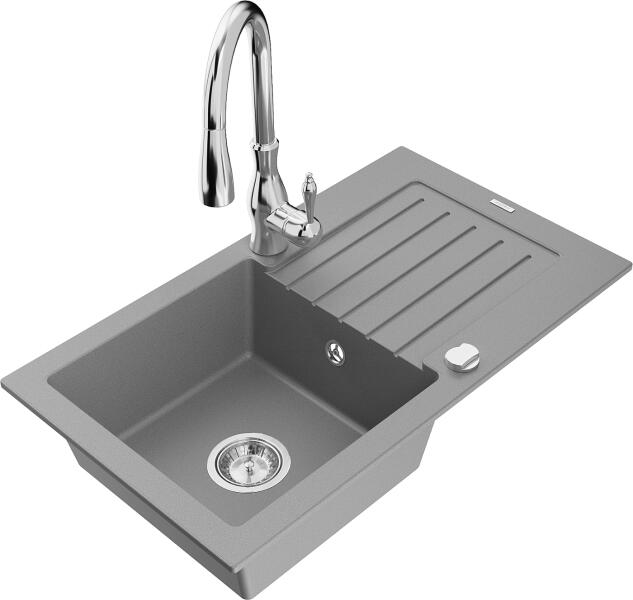 Mexen Pablo, gránit mosogató 752x436x161 mm, 1 kamrás és Savita mosogató csaptelep, szürke, 6510-71-672601-00 Gyártó: Mexen Sorozat: Pablo Méretek: 752x436x161 mm Kamra mélysége: 151 mm Kamra méretei: 356x332 mm Lefolyó átmérője: ø90 mm Szín: szürke Típus: 1 kamrás csepegtetővel Típus: a pultba süllyesztve Anyaga: gránit (80% gránit adalékanyag 20% gyanta) Túlfolyó lyu