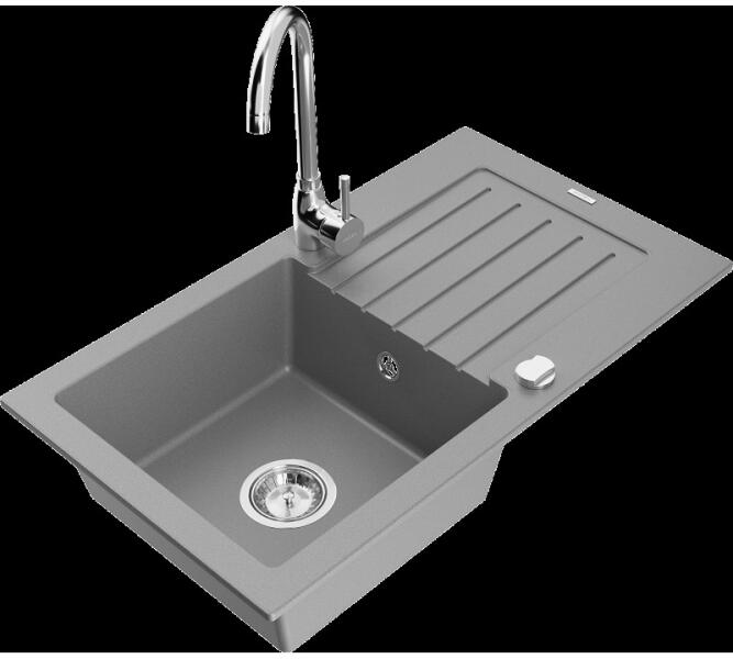 Mexen Cesar konyhai mosogató: Gyártó: Mexen Sorozat: Cesar Modell: 1 kamrás Beépítés: felülről a munkalapba süllyesztve Méretek: 775x470x190 mm Kamra mélysége: 180 mm Kamra mérete: 410x355 mm Lefolyó átmérője: 90 mm Szifon + automatikus leeresztő csavar Anyaga: gránit (80% gránit - kő, 20% gyanta) Sima felület a könnyű tisztítás érdekében: igen Megnövelt ellenállás
