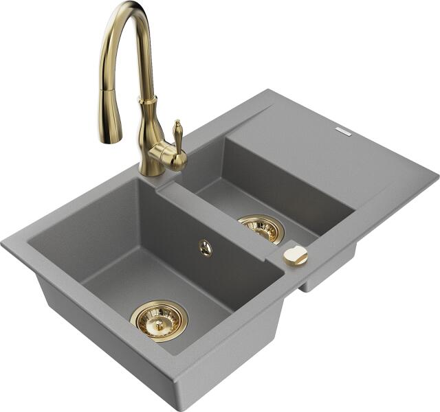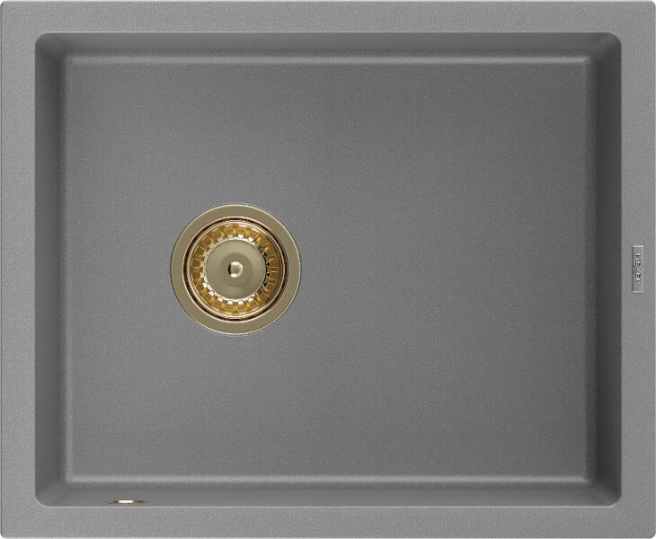 Mexen Pedro, gránit mosogató 560x460x200 mm, 1 kamrás, szürke, arany szifonnal, 6508561000-71-G Gyártó: Mexen Sorozat: Pedro Méretek: 560 x 460 x 200 mm Kamra mélysége: 190 mm Szín: szürke Modell: 1 kamrás Kamra mérete: 500x400 mm Lefolyó átmérője: 90 mm Kézi szifon Anyaga: gránit (80% gránit - kő, 20% gyanta) Könnyen tisztítható sima felület Megnövelt ellenállás az ü