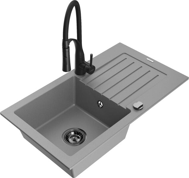 Mexen Pablo konyhai mosogató: Gyártó: Mexen Sorozat: Pablo Modell: 1 kamrás Beépítés: felülről a munkalapba süllyesztve Méretek: 752x436x161 mm Kamra mélysége: 151 mm Kamra mérete: 356x332 mm Lefolyó átmérője: 90 mm Szifon + automatikus leeresztő csavar Anyaga: gránit (80% gránit - kő, 20% gyanta) Sima felület a könnyű tisztítás érdekében: igen Megnövelt ellenállás