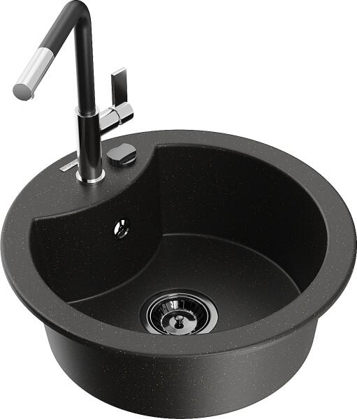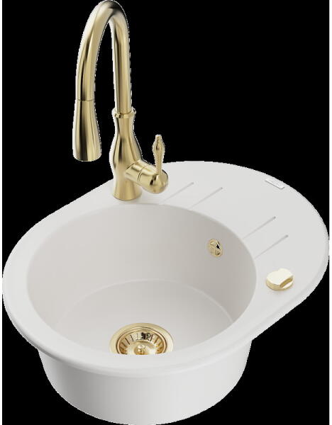 Mexen Diego konyhai mosogató: Gyártó: Mexen Sorozat: Diego Modell: 1 kamrás Beépítés: felülről a munkalapba süllyesztve Méretek: 488x488x167 mm Kamra mélysége: 157 mm Kamra átmérője: 406 mm Lefolyó átmérője: 90 mm Szifon + automatikus leeresztő csavar Anyaga: gránit (80% gránit - kő, 20% gyanta) Sima felület a könnyű tisztítás érdekében: igen Megnövelt ellenállás