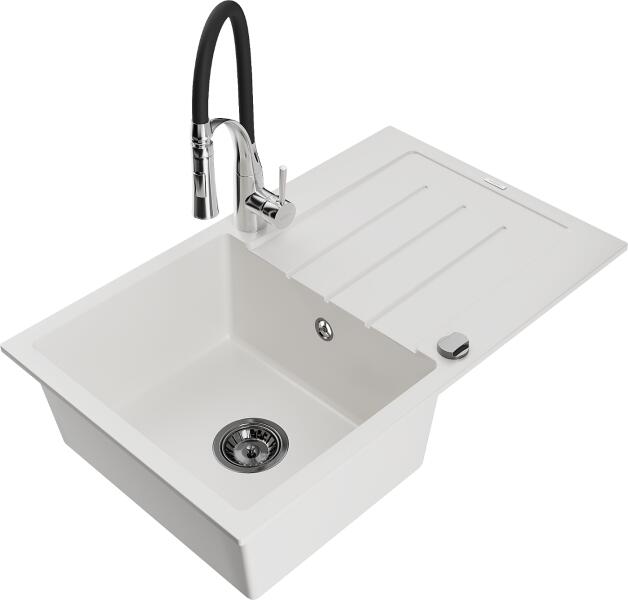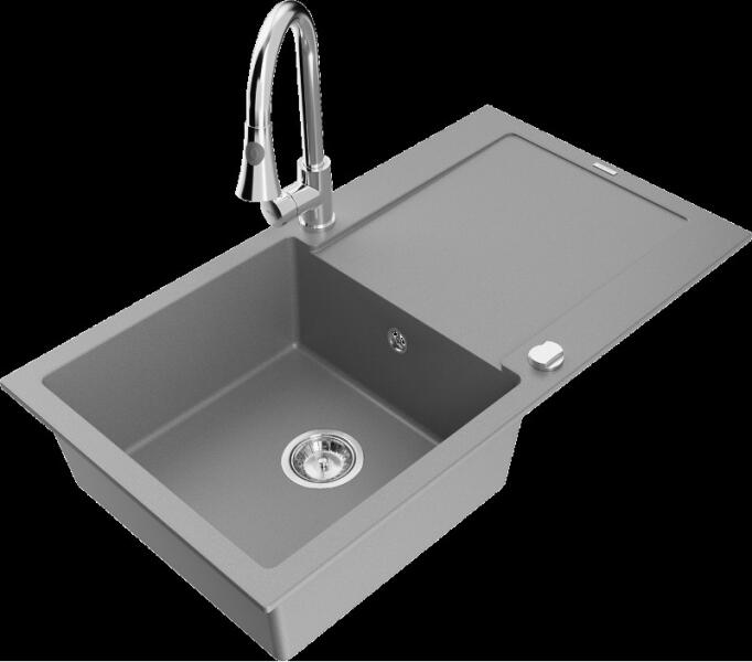 Leo konyhai mosogató: Gyártó: Mexen Sorozat: Leo Modell: 1-kamrás s csepegtetővel Hossza 900 mm Szélesség 500 mm Magasság: 190 mm Kamra mélysége: 180 mm Kamra mérete: 430x415 mm Alkalmas 500 mm-es szekrényekhez Szifon + automatikus leeresztő csavar Anyaga: gránit (80% gránit - kő, 20% gyanta) Sima felület a könnyű karbantartás érdekében: igen Megnövelt ellenállás az ütés
