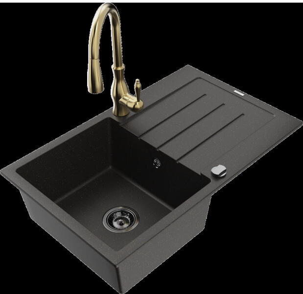 Mexen Bruno konyhai mosogató: Gyártó: Mexen Sorozat: Bruno Modell: 1 kamrás Beépítés: felülről a munkalapba süllyesztve Méretek: 795x495x200 mm Kamra mélysége: 190 mm Kamra mérete: 440x360 mm Lefolyó átmérője: 90 mm Szifon + automatikus leeresztő csavar Anyaga: gránit (80% gránit - kő, 20% gyanta) Sima felület a könnyű tisztítás érdekében: igen Megnövelt ellenállás