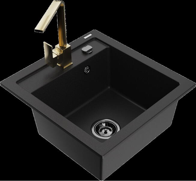 Mexen Diego, 1 kamrás gránit mosogató 488x488x167 mm, fekete Duero csaptelep, fekete foltos, 6512-76-671600-76 Gyártó: Mexen Sorozat: Diego Modell: 1 kamrás Felszerelés: munkalapra Szín: fekete foltos Felület típusa : sima Hossza 488 mm Szélesség 488 mm Magasság: 167 mm Kamra mélysége: 157 mm Kamra mérete: 406 mm Lefolyó átmérője: 90 mm Szifon + automatikus leeresztő Anyaga: