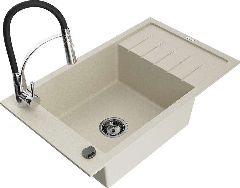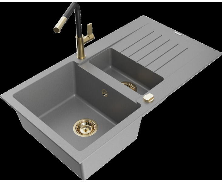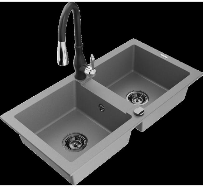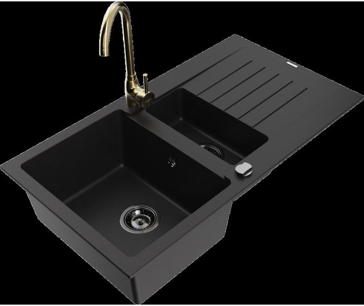 Mexen Elias konyhai mosogató: Gyártó: Mexen Sorozat: Elias Modell: 1 kamrás Beépítés: felülről a munkalapba süllyesztve Méretek: 795x480x200 mm Kamra mélysége: 190 mm Kamra mérete: 465x420 mm Lefolyó átmérője: 90 mm Szifon + automatikus leeresztő csavar Anyaga: gránit (80% gránit - kő, 20% gyanta) Sima felület a könnyű tisztítás érdekében: igen Megnövelt ellenállás