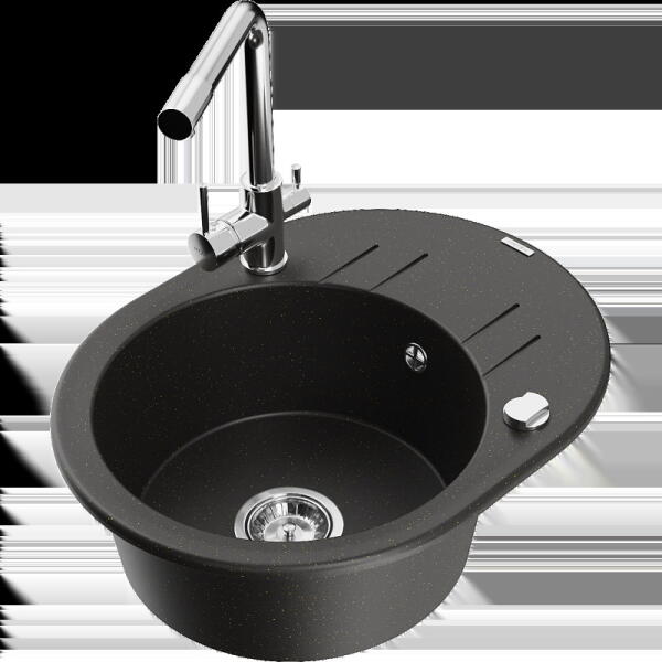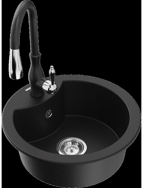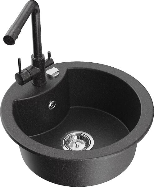Mexen Diego konyhai mosogató: Gyártó: Mexen Sorozat: Diego Modell: 1 kamrás Beépítés: felülről a munkalapba süllyesztve Méretek: 488x488x167 mm Kamra mélysége: 157 mm Kamra átmérője: 406 mm Lefolyó átmérője: 90 mm Szifon + automatikus leeresztő csavar Anyaga: gránit (80% gránit - kő, 20% gyanta) Sima felület a könnyű tisztítás érdekében: igen Megnövelt ellenállás
