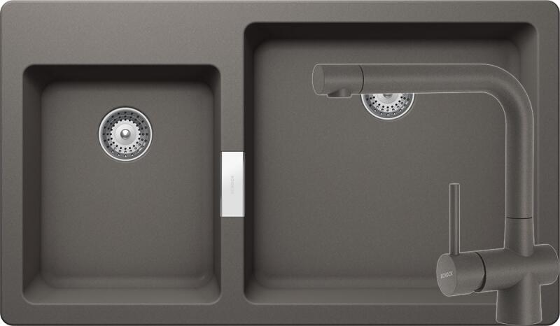 Schock Signus N-175 Gránit Mosogató 860 x 500 mm Silverstone Cristadur munkalapba beépíthető, kétmedencés, csepegtető nélküli, ideálisan illeszkedik a minimum 90 cm-es alsószekrényhez. A mosogatótálca nem megfordítható, a csaptelep helye előre elkészített, könnyedén áttörhető. A csomagban találja a használati útmutatót, amely részletes leírást ad a csaptelep helyén
