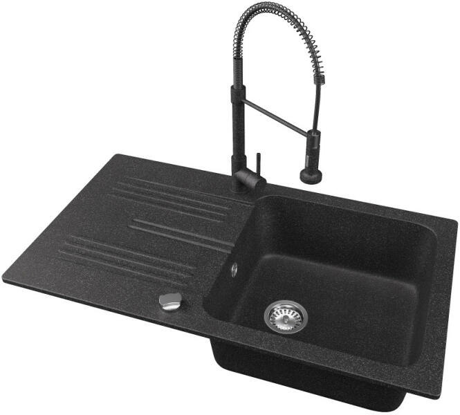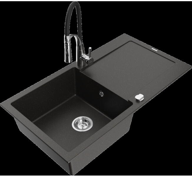 NERO Malta gránit mosogató, ami egyesíti a praktikus megoldást a bőséges helykínálattal és a harmonikus designnal. Méretes, 36 x 38 cm-es, medencével és kellően nagy csepegtető résszel rendelkezik, arányosan kialakítva. Minden igényt kielégít ami egy mosogatótól elvárható, amihez mindössze 78 cm hely szükséges. Egyenes és hajlított vonalvezetés harmonikus keveréke je