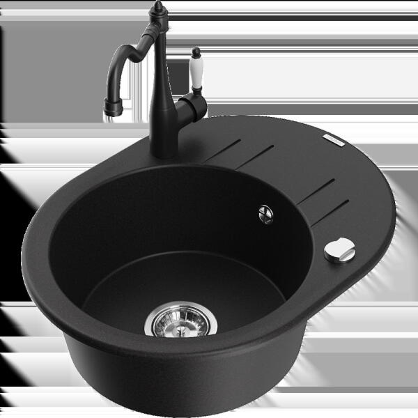 MOSOGATÓ: Egymedencés kör alakú csepptálcával ellátott gránit mosogató, amely ideális kis konyhákba, mély medencével, fekete-szemcsésszínben hozzáillő csapteleppel szettben! Tökéletes minőség, gyönyörű kivitel, praktikus helykihasználás, mely minden stílusú konyhához tökéletesen illeszkedik. Mérete: 586x458mm A medence mérete: 378x374mm A mosogató mélysége: 175m