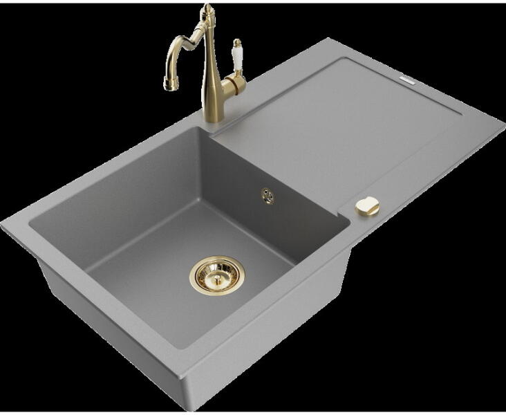 Vancouver gránit mosogató szett szürke színben, extra nagy medencés kivitelben. A 38,5 x 48,5 cm-es nagyméretű medence és a csepegtető megkönnyíti a nagyobb edények, lábosok elmosását. A két lyuk felül helyezkedik el, így kényelmes a csap és az adagoló használata. A letisztult szögletes formavilág kiválóan illeszkedik egy modern stílusú konyhába. Ez a mosogató csak eb