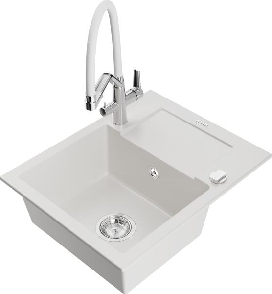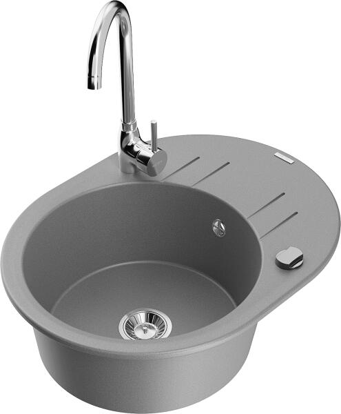 Mexen Kevin, gránit mosogató 586x458x190 mm, 1 kamrás és króm csaptelep Telma, szürke, 6517-71-670200-00 Gyártó: Mexen Sorozat: Kevin Modell: 1 kamrás, rövid leeresztővel Felszerelés: munkalapra Hossza 586 mm Szélesség 458 mm Magasság: 190 mm Kamra mérete: 378x374 mm Kamra mélysége: 175 mm A lefolyó átmérője: Ø 90 mm Szifon + automatikus leeresztő csavar Anyaga: gránit (80