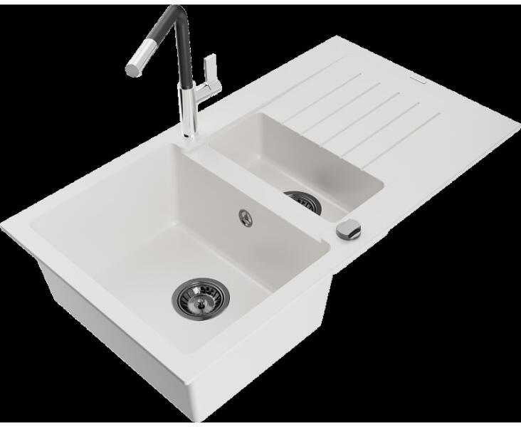 Mexen Bruno konyhai mosogató: Gyártó: Mexen Sorozat: Bruno Modell: 1 kamrás Beépítés: felülről a munkalapba süllyesztve Méretek: 795x495x200 mm Kamra mélysége: 190 mm Kamra mérete: 440x360 mm Lefolyó átmérője: 90 mm Szifon + automatikus leeresztő csavar Anyaga: gránit (80% gránit - kő, 20% gyanta) Sima felület a könnyű tisztítás érdekében: igen Megnövelt ellenállás