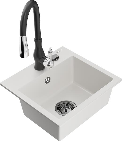 Mexen Enzo konyhai mosogató Gyártó: Mexen Sorozat: Enzo Modell: 1 kamrás, rövid csepegtetővel Beépítés: felülről a munkalapba süllyesztve Hossza 576 mm Szélesség 465 mm Magasság: 174 mm Kamra mélysége: 164 mm Kamra mérete: 395x320 mm Szifon + automatikus leeresztő csavar Anyaga: gránit (80% gránit - kő, 20% gyanta) Megnövelt ellenállás az ütésekkel, karcolásokkal, elsz