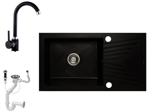 Nagyméretű, minden igényt kiszolgáló gránit mosogató, extra nagy medencével és stílusos, halszálka mintázatú, modern csepegtetővel. A 48 x 38 cm-es medence bármilyen méretű edényt befogad, emellett a csepegtető mérete is kellően nagy. A csomag tartalmazza a mosogatót, a csaptelepet, és dugóemelős szifonkészletet. A csaptelep enyhén szemcsés, pöttyös mintája visszaadj