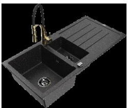 Mosogató Sorozat: Carlos Modell: 1,5-kamrás Beépítés: a munkalapba való beágyazáshoz Méretek: 582x475x177 mm Kamra mélysége: 162 mm (nagyobb), 102 mm (kisebb) Kamra méretei: 395x272 mm (nagyobb), 375x182 mm (kisebb) A lefolyó átmérője: Ø 90 mm Szifon + automatikus leeresztő csavar Anyaga: gránit (80% gránit - kő, 20% gyanta) Megnövelt ellenállás az ütésekkel, karcolásokk
