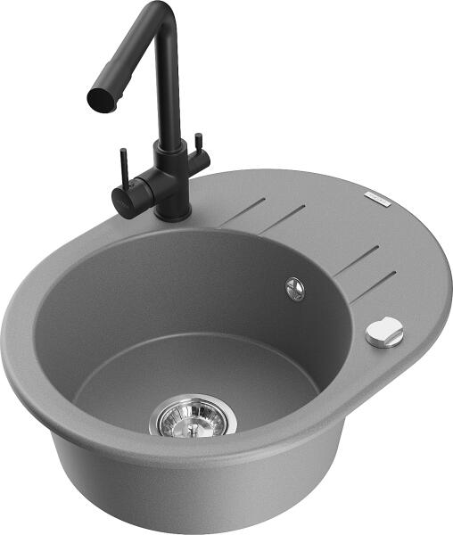 Mexen Kevin, gránit mosogató 586x458x190 mm, 1 kamrás és fekete Duero csaptelep, szürke, 6517-71-671600-70 Gyártó: Mexen Sorozat: Kevin Modell: 1 kamrás, rövid leeresztővel Felszerelés: munkalapra Hossza 586 mm Szélesség 458 mm Magasság: 190 mm Kamra mérete: 378x374 mm Kamra mélysége: 175 mm A lefolyó átmérője: Ø 90 mm Szifon + automatikus leeresztő csavar Anyaga: gránit (8