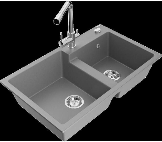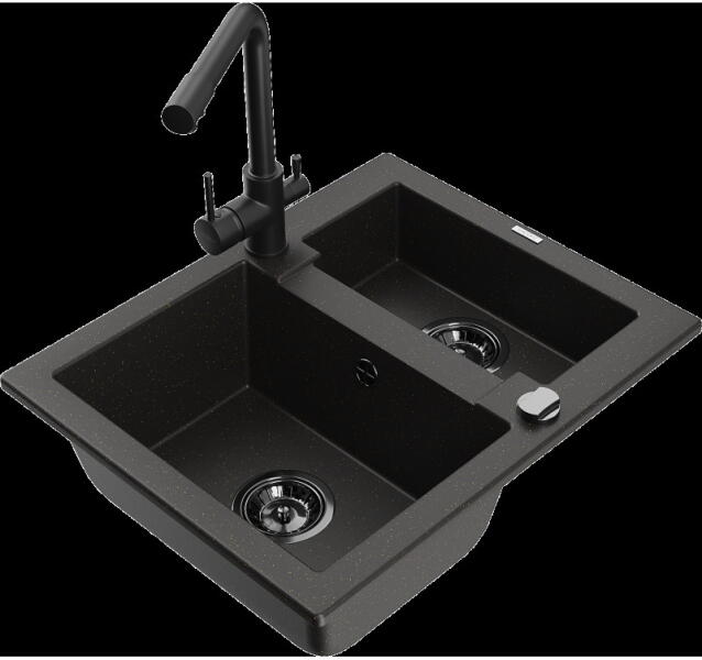 Mexen Tomas, gránit mosogató 800x500x190 mm, 2 kamrás és fekete Duero csaptelep, fekete, 6516-77-671600-70 A konyhai mosogató műszaki adatai: Gyártó: Mexen Sorozat: Tomas Modell: 2-kamrás csepptálca nélkül Felszerelés: munkalapra Fekete szín Felület: sima Hossza 800 mm Szélesség 500 mm Magasság: 190 mm Kamra mélysége: 180 mm (nagyobb), 180 mm (kisebb) Kamra mérete: 440x387 mm