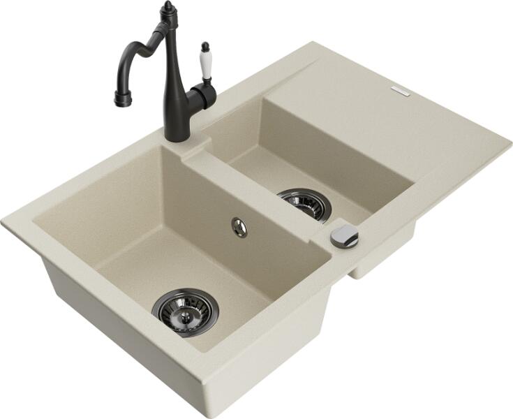 Mexen Gaspar, gránit mosogató 752x436x161 mm, 1,5 kamrás és mosogató csaptelep Carla, bézs, 6507-69-670700-70 Gyártó: Mexen Sorozat: Gáspár Modell: 1,5-kamrás, rövid leeresztővel Beépítés: felülről a munkalapba való beágyazáshoz Szín: bézs Hossza 737 mm Szélesség 475 mm Magasság: 177 mm Kamra mélysége: 167 mm (nagyobb), 107 mm (kisebb) Kamra mérete: 395x272 mm (nagyobb