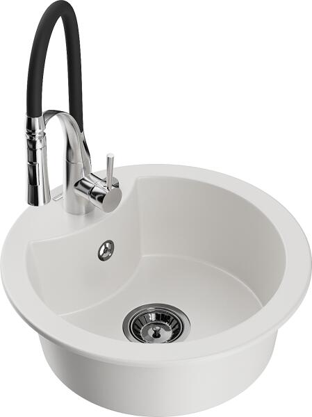 Mexen Diego konyhai mosogató: Gyártó: Mexen Sorozat: Diego Modell: 1 kamrás Beépítés: felülről a munkalapba süllyesztve Méretek: 488x488x167 mm Kamra mélysége: 157 mm Kamra átmérője: 406 mm Lefolyó átmérője: 90 mm Szifon + automatikus leeresztő csavar Anyaga: gránit (80% gránit - kő, 20% gyanta) Sima felület a könnyű tisztítás érdekében: igen Megnövelt ellenállás