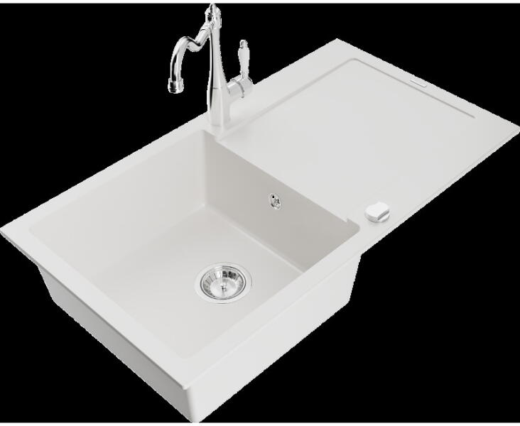 NERO Uno gránit mosogató, ami ideális választás kisméretű konyhákba, ahol fontos a helytakarákos megoldás. Letisztult, szögletes formatervezésének köszönhetően bármilyen stílusú konyha tökéletes alkotóeleme lehet, beépíthető 45 cm széles vagy szélesebb bútorszekrényekbe. Összetétele 80% gránit őrlemény és 20% akril, ami megfelel a szabvány gránit mosogató öss