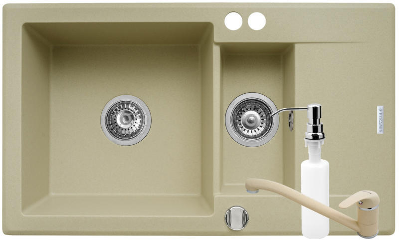 Mosogató Sorozat: Carlos Modell: 1,5-kamrás Beépítés: a munkalapba való beágyazáshoz Méretek: 582x475x177 mm Kamra mélysége: 162 mm (nagyobb), 102 mm (kisebb) Kamra méretei: 395x272 mm (nagyobb), 375x182 mm (kisebb) A lefolyó átmérője: Ø 90 mm Szifon + automatikus leeresztő csavar Anyaga: gránit (80% gránit - kő, 20% gyanta) Megnövelt ellenállás az ütésekkel, karcolásokk