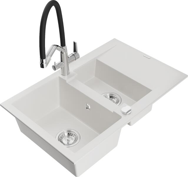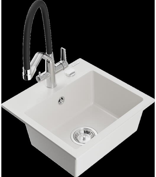 Matias konyhai mosogató: Gyártó: Mexen Sorozat: Matias Modell: 1,5-kamrás lefolyóval Beépítés: felülről a munkalapba való beágyazáshoz Hossz: 900 mm Szélesség: 505 mm Magasság: 200 mm Kamra mélysége: 180 mm (nagyobb), 115 mm (kisebb) Kamra mérete: 435x335 mm (nagyobb), 345x150 mm (kisebb) Lefolyó átmérője: 90 mm Szifon + automatikus leeresztő csavar Anyaga: gránit (80% gr