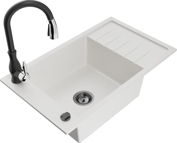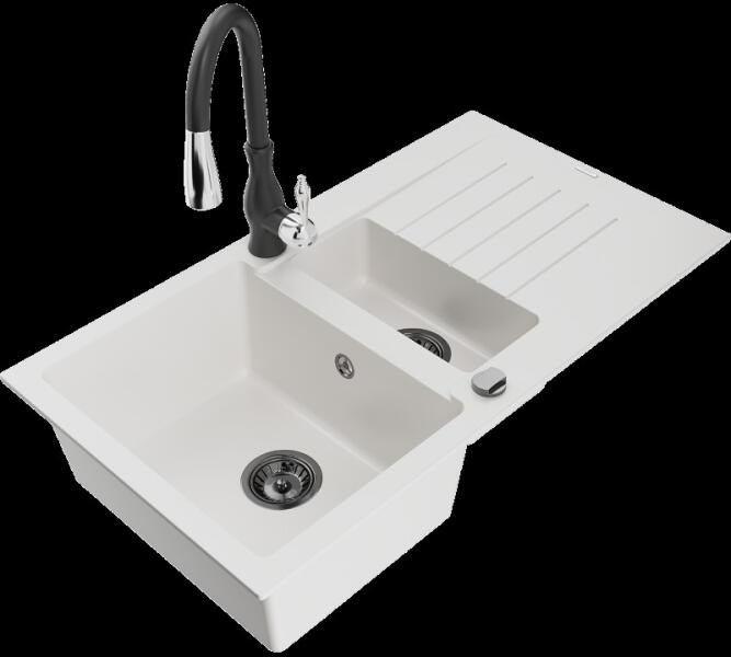Mexen Pablo konyhai mosogató: Gyártó: Mexen Sorozat: Pablo Modell: 1 kamrás Beépítés: felülről a munkalapba süllyesztve Méretek: 752x436x161 mm Kamra mélysége: 151 mm Kamra mérete: 356x332 mm Lefolyó átmérője: 90 mm Szifon + automatikus leeresztő csavar Anyaga: gránit (80% gránit - kő, 20% gyanta) Sima felület a könnyű tisztítás érdekében: igen Megnövelt ellenállás