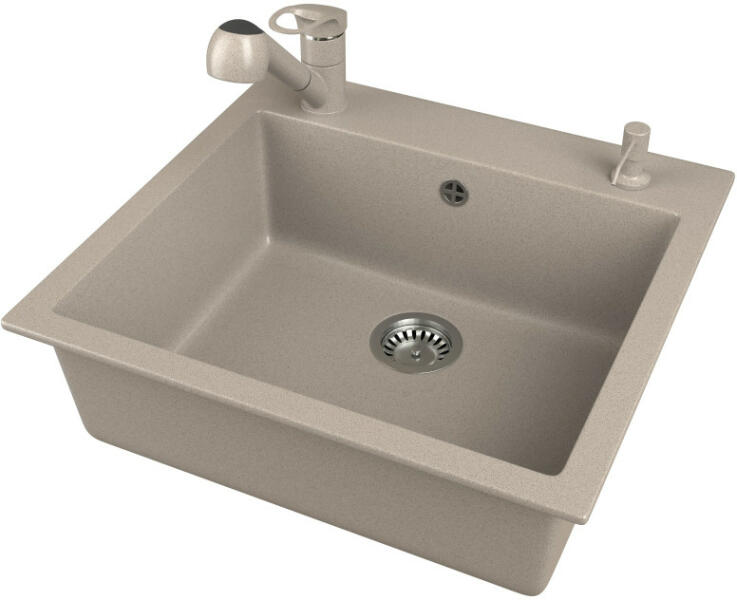 Gyártó: Mexen Sorozat: Elias + Savita Mosogató: Mérete: 795x480x200 mm Kamra - mélység: 190 mm Kamra méretei: 465x420 mm Kimeneti átmérő: ø90 mm Típus: 1 kamrás, rövid csepegtetővel Mosogató típusa: a munkalapba való beágyazáshoz Anyaga: gránit (80% gránit adalékanyag 20% gyanta) Túlfolyó nyílás: Igen Lyukak: 2 (1 lyuk a mosogató csaptelepéhez, 1 lyuk az automatikus le