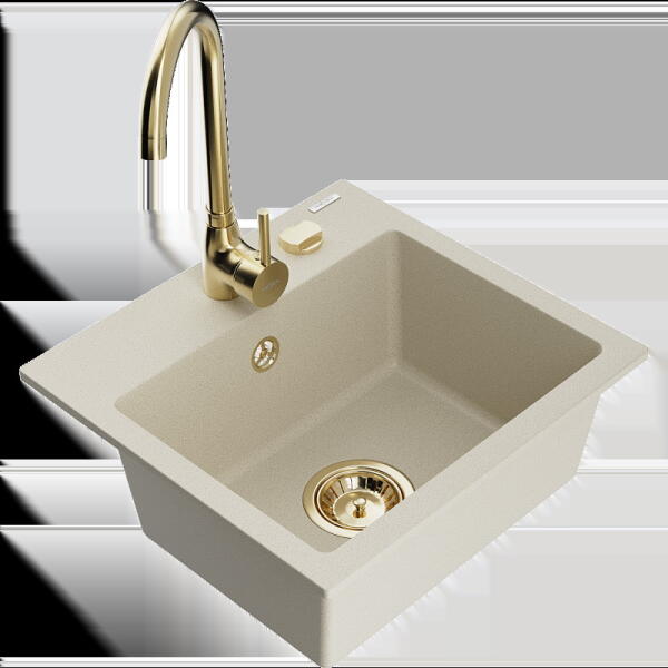 Mexen Mario, gránit mosogató 820x436x161 mm, 2 kamrás és mosogató csaptelep Carla, bézs, 6504-69-670700-70 Gyártó: Mexen Sorozat: Mario + Carlo Mosogató: Méretek: 820x436x161 mm Kamra mélysége: 151 mm Kamra méretei: 356x336 mm Lefolyó átmérője: ø90 mm Típus: 2 kamrás Típus: felülről az asztal munkalapjába süllyesztve Anyaga: gránit (80% gránit adalékanyag 20% gyanta) T