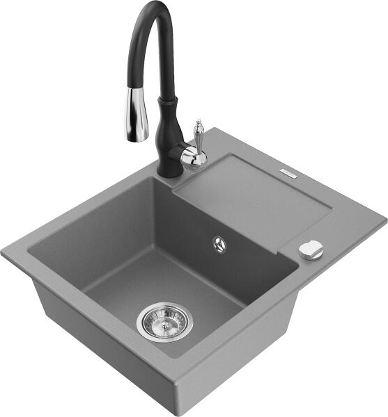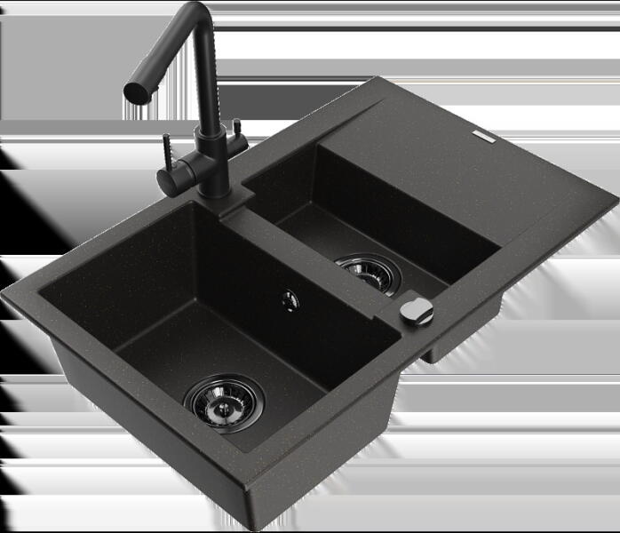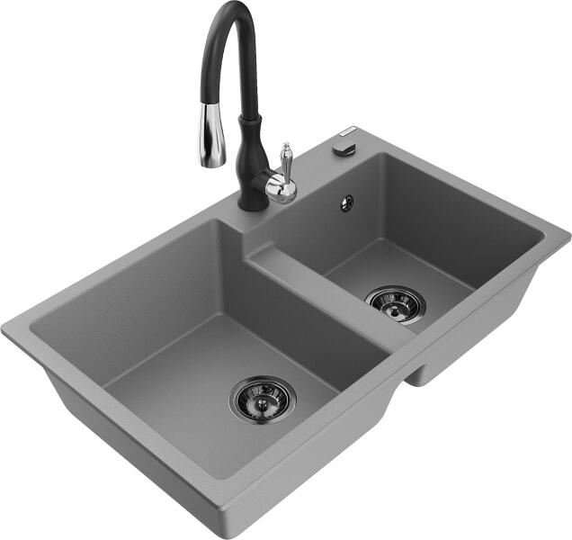 Mexen Tomas, gránit mosogató 800x500x190 mm, 2 kamrás és Savita mosogató csaptelep, szürke, 6516-71-672601-70-B A konyhai mosogató műszaki adatai: Gyártó: Mexen Sorozat: Tomas Modell: 2-kamrás csepptálca nélkül Beépítés: a munkalapba való beágyazáshoz Szín: szürke Felület: sima Hossza 800 mm Szélesség 500 mm Magasság: 190 mm Kamra mélysége: 180 mm (nagyobb), 180 mm (ki