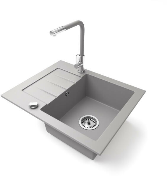 NERO Monza gránit mosogatótálca szürke színben. Kis méretének köszönhetően tökéletesen illik olyan kisebb méretű konyhákba ahol minden centiméter helyre szükség van. Mindössze 57 cm széles, amelyet mélységével kompenzál, így mind a medence, mind a csepegtető rész tökéletesen használható. Modern, karakteresen szögletes formavilág és kiemelkedő anyagvastagság jell
