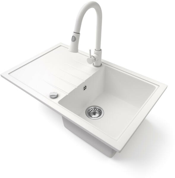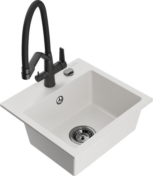 Milo konyhai mosogató: Gyártó: Mexen Méretek: 435x410x171 mm Kamra mélysége: 161 mm Kamra méretei: 375x280 mm Lefolyó átmérője: ø90 mm Típus: 1 kamrás Beépítés: felülről a pultba süllyesztve Anyaga: gránit (80% gránit adalékanyag 20% gyanta) Túlfolyó lyuk: igen Lyukak: 2 (1 x akkumulátor, 1 x automatikus leeresztő csavar vezérlés) Nagy ellenállás a karcolásokk