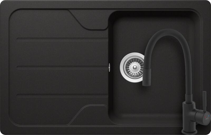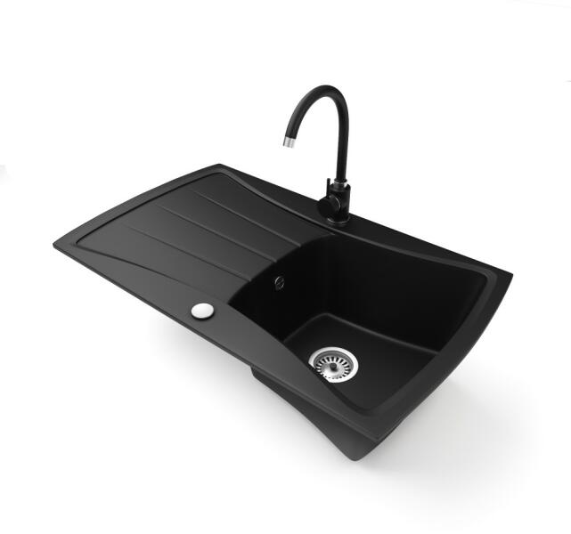 NERO Venezia gránit mosogató matt fekete színben. Egyedi és különleges formával tervezett egymedencés mosogató, kellően nagyméretű csepegtető résszel. A velencei gondolákat idéző, harmonikusan kialakított ívekkel a konyha esztétikus része, emellett anyagvastagságának köszönhetően rendkívül masszív konsktrukció. A mosogatón 2 lyuk található, egy a csaptelepnek és e